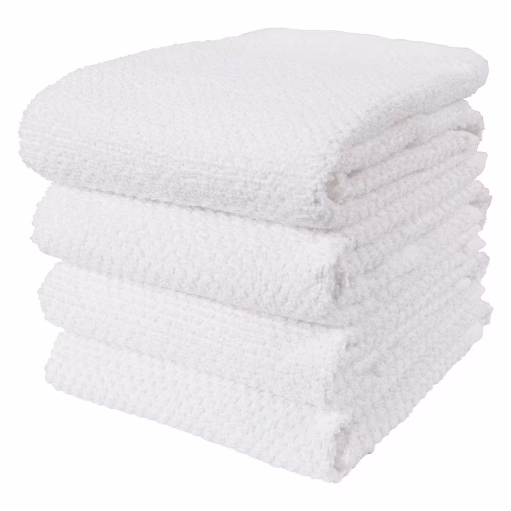 None Set of 4 Deluxe Popcorn Terry Kitchen Towels, 20 x 30 in., 100% Cotton Kitchen Dish Towels, White