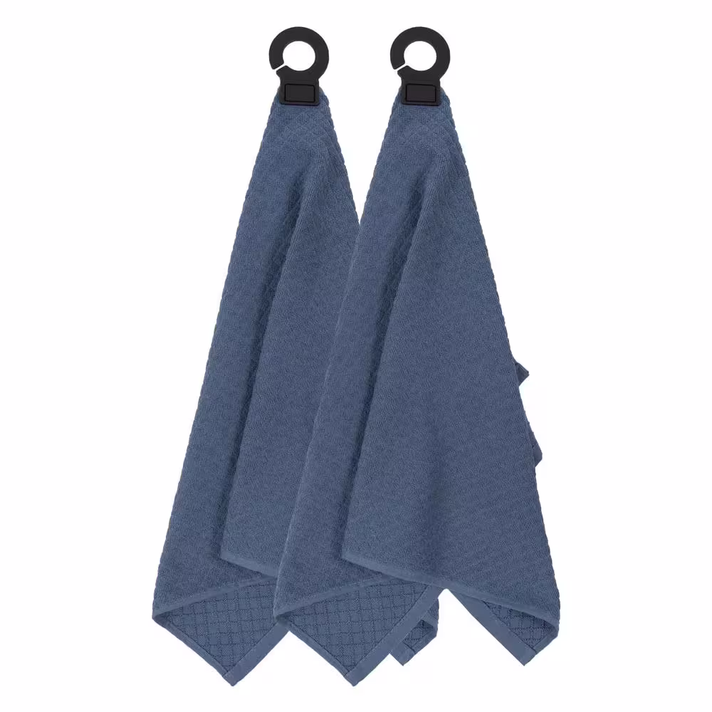 RITZ Hook and Hang Federal Blue Woven Cotton Pattern Kitchen Towel (Set of 2)