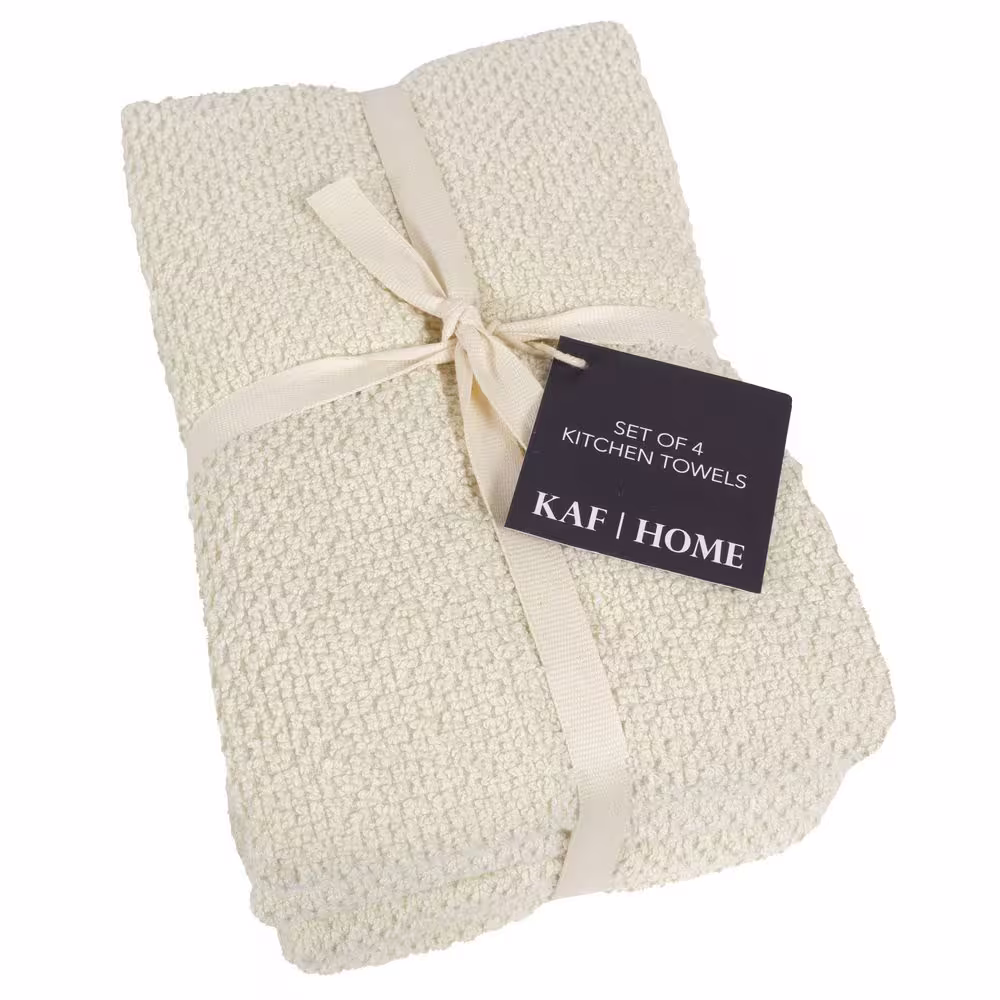 None Set of 4 Deluxe Popcorn Terry Kitchen Towels, 20 x 30 in., 100% Cotton Kitchen Dish Towels, Alabaster
