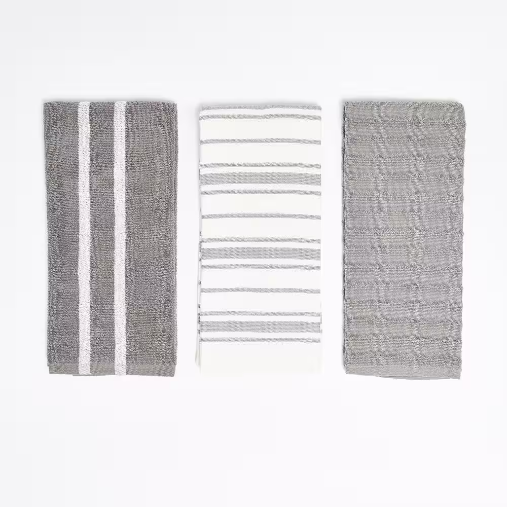 Nautica Grey Multi Stripe 100% Cotton Kitchen Towels (3 Piece Set)