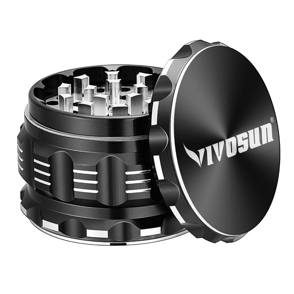 VIVOSUN 2.5 in. Herb Grinder Aluminium Spice Grinder With Pollen Scraper for Kitchen in Black