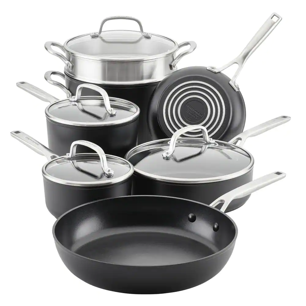 KitchenAid Hard Anodized Nonstick 10 Piece Hard andozed Aluminum Nonstick Cookware Set in Onyx