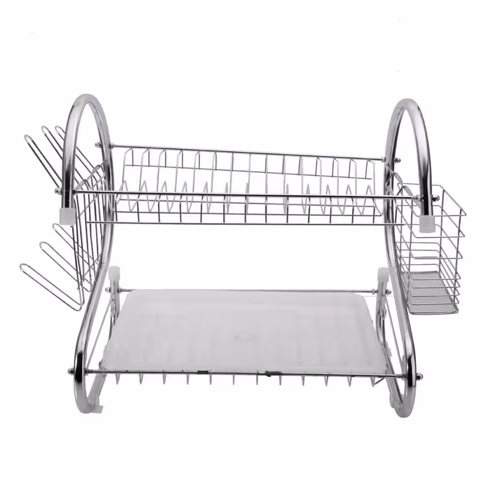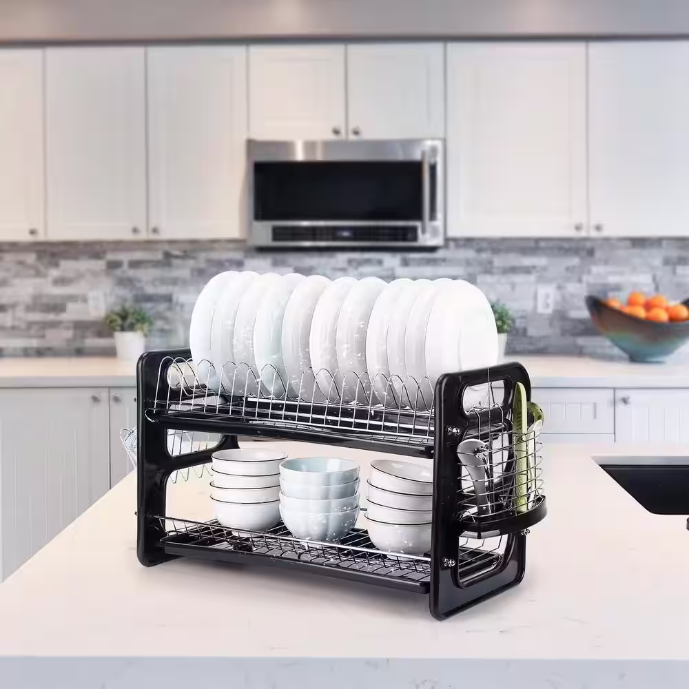None 2-Tier Dish Rack Set Anti-Rust Dish Drainer Shelf Tableware Holder Cup Holder For Kitchen Counter Storage