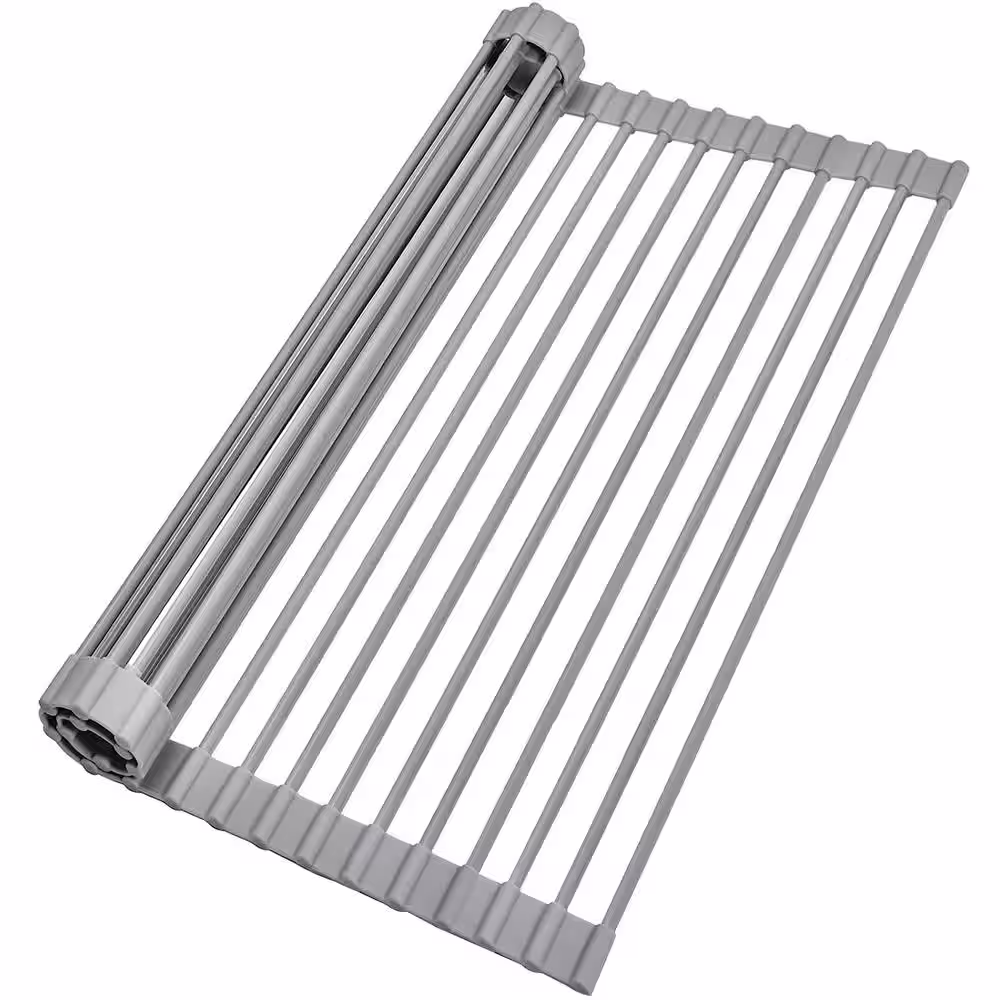 BWE 20.5 in x 13 in Roll Up Kitchen Sink Drying Dish Rack Foldable Drainer for Sink Counter Cups Fruits Vegetables In Gray