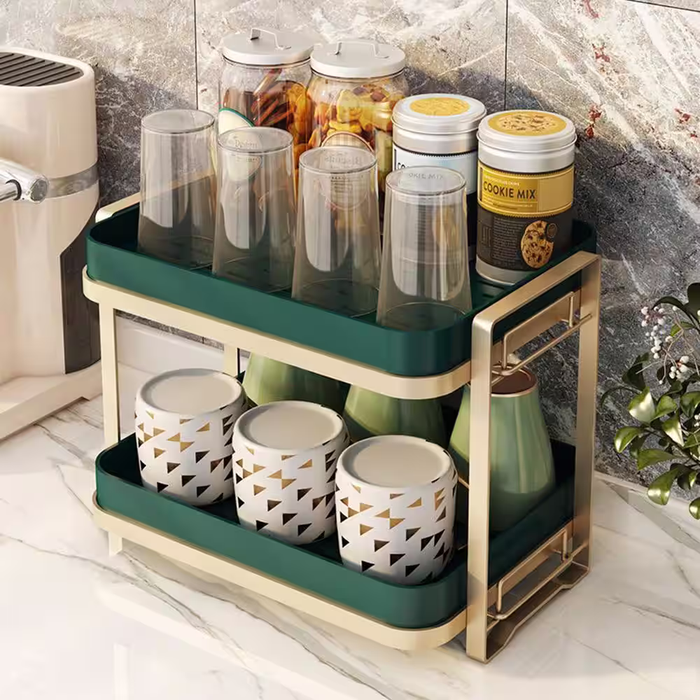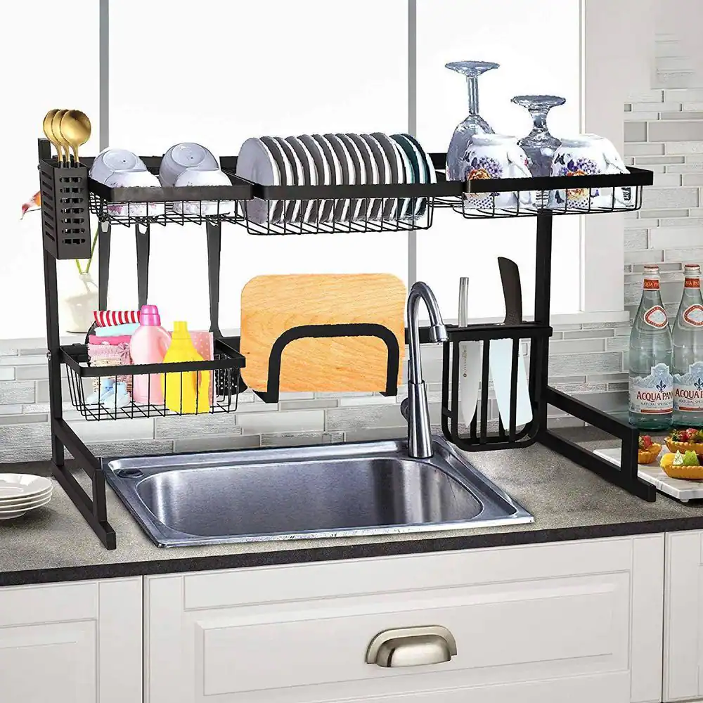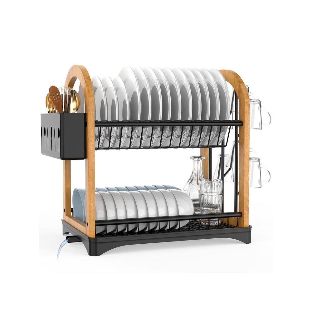 None 2-Tier Metal Black Drying Dish Rack for Kitchen Counter, Kitchen Dishes Organizers, Drain Board Set