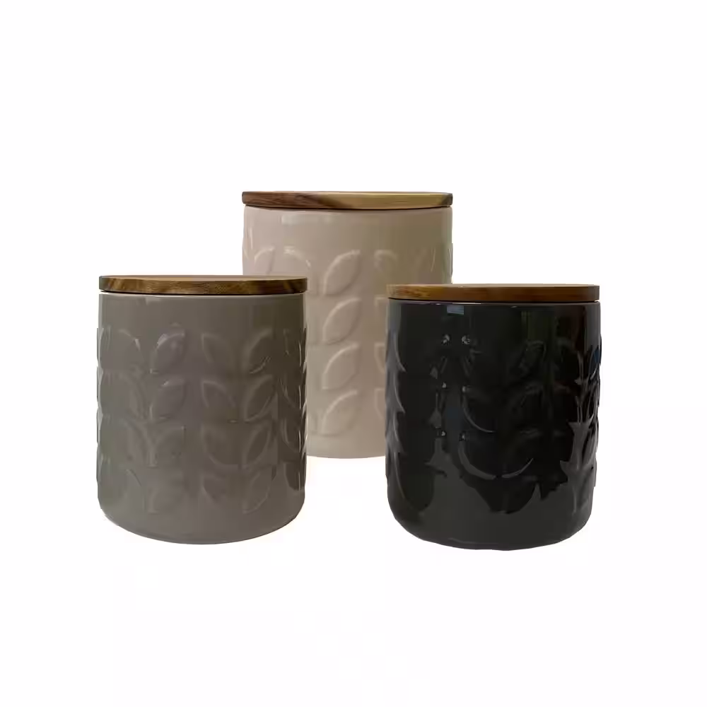 Tabletops Gallery Ebony Ceramic Kitchen Canister Set with Acacia Wood Lids (3-Piece)