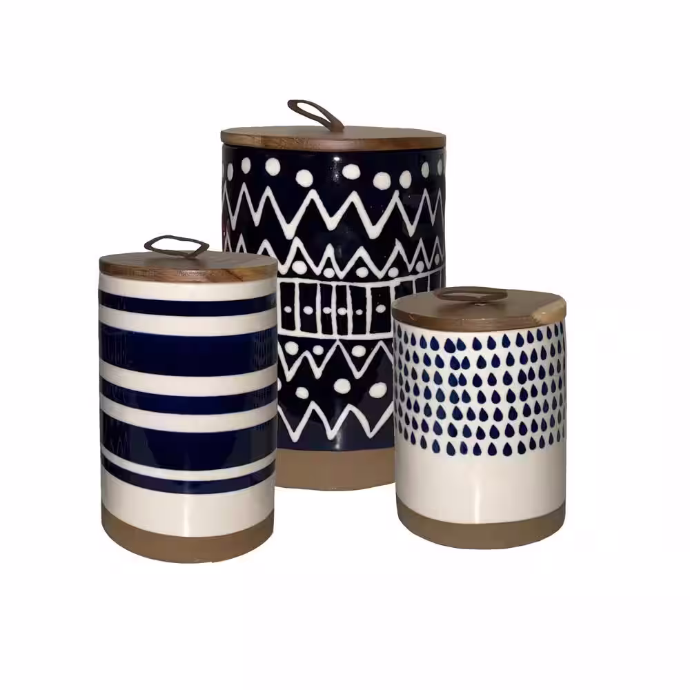 Tabletops Gallery Mayan Tribal 3-Piece Ceramic Kitchen Canister Set with Acacia Wood Lids
