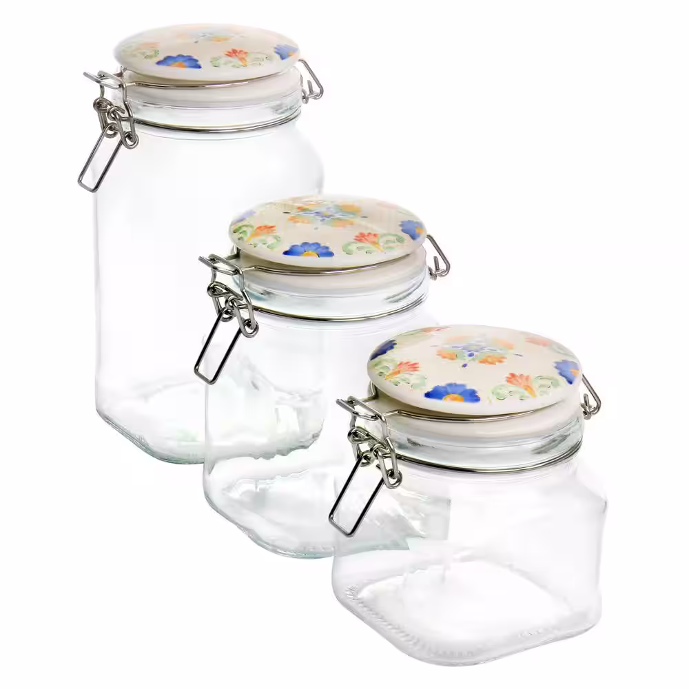 Laurie Gates California Designs Tierra 3-Piece Glass Canister Kitchen Set with Decorated Lids