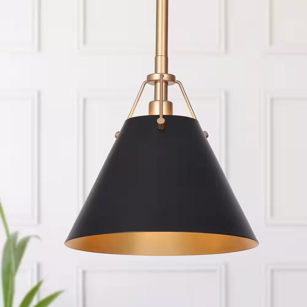 Uolfin Modern Farmhouse Dome Kitchen Island Pendant Lighting Taine 1-Light Black & Brass Bell Pendant Light with Metal Shade