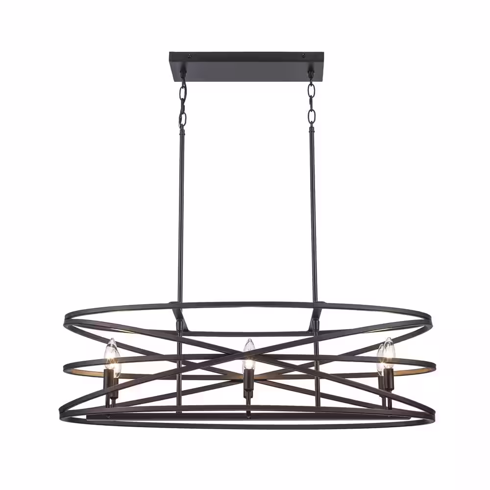 Home Decorators Collection Sarolta Sands 6-Light Bronze Kitchen Island Pendant Light Fixture with Linear Metal Shade