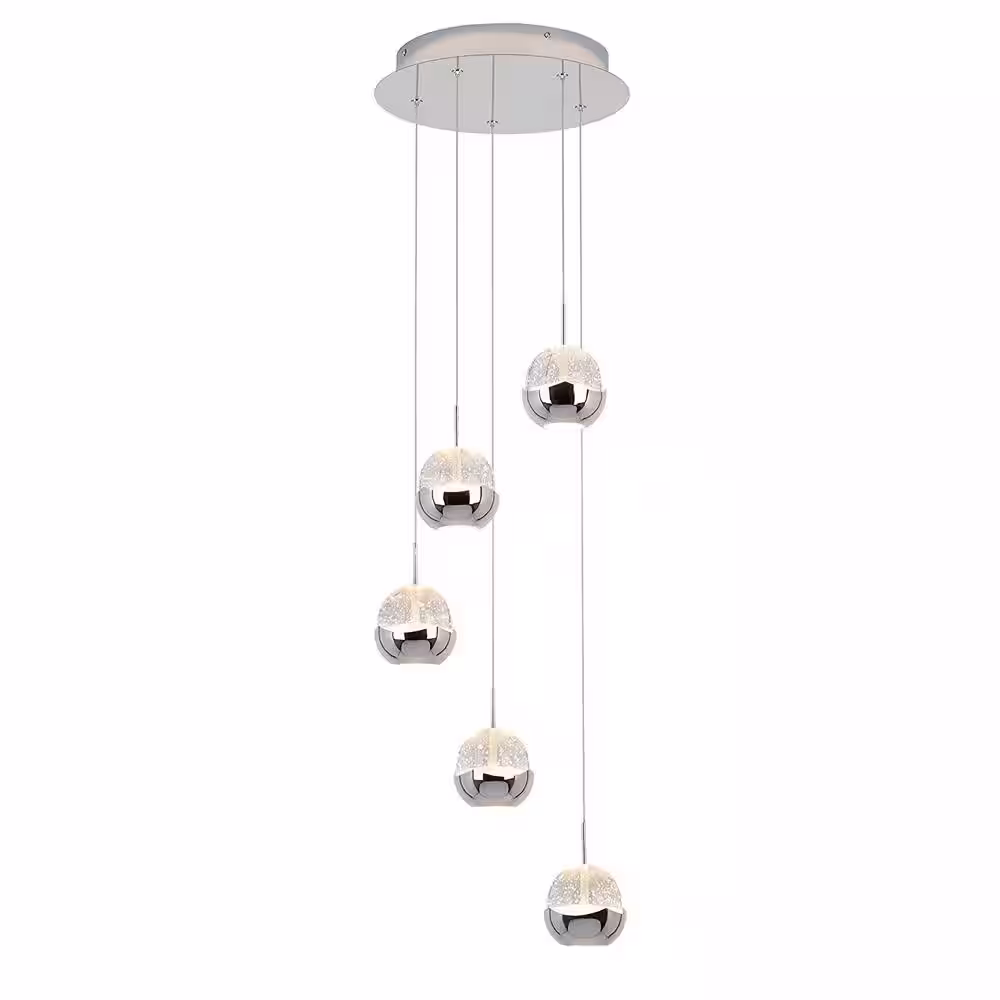 Artika Oracle 22-Watt 5 Light Chrome Modern Integrated LED Pendant Light Fixture for Dining Room or Kitchen
