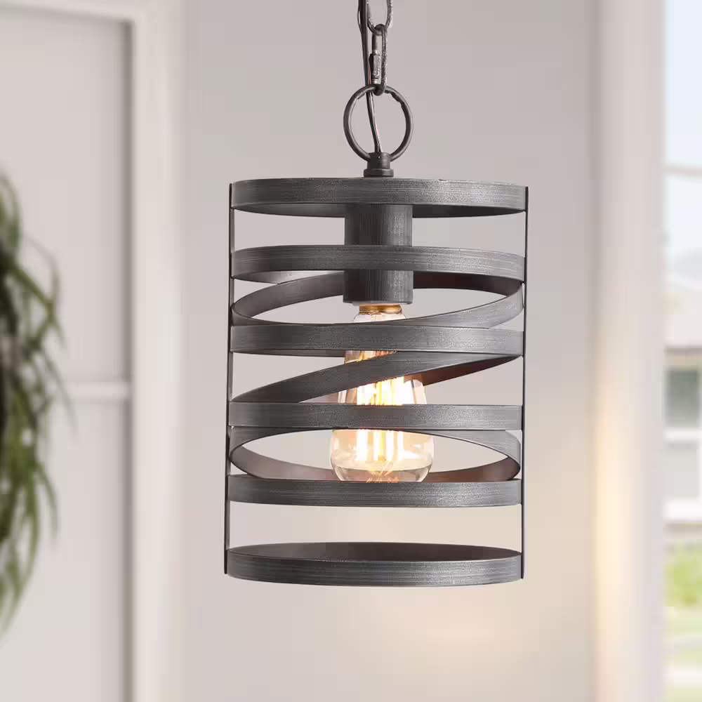 LNC Brushed Gray Modern 1-Light Pendant Drum Cage Kitchen Island High Ceiling Light