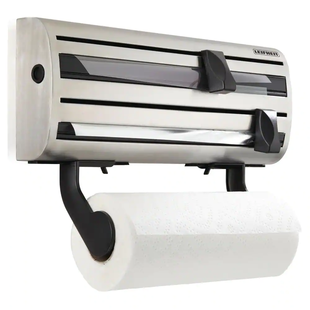 Leifheit Parat Royal Stainless Steel Wall-Mounted Two Roll Compartments Kitchen Wrap Dispenser and Paper Towel Holder