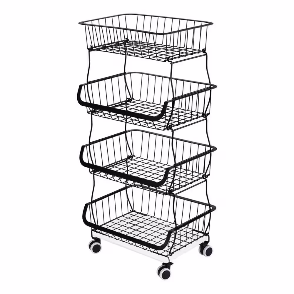 None 4-Piece Stackable Metal Wire Baskets Cart Fruit Vegetable Storage Basket Snack Organizer Bins for Kitchen