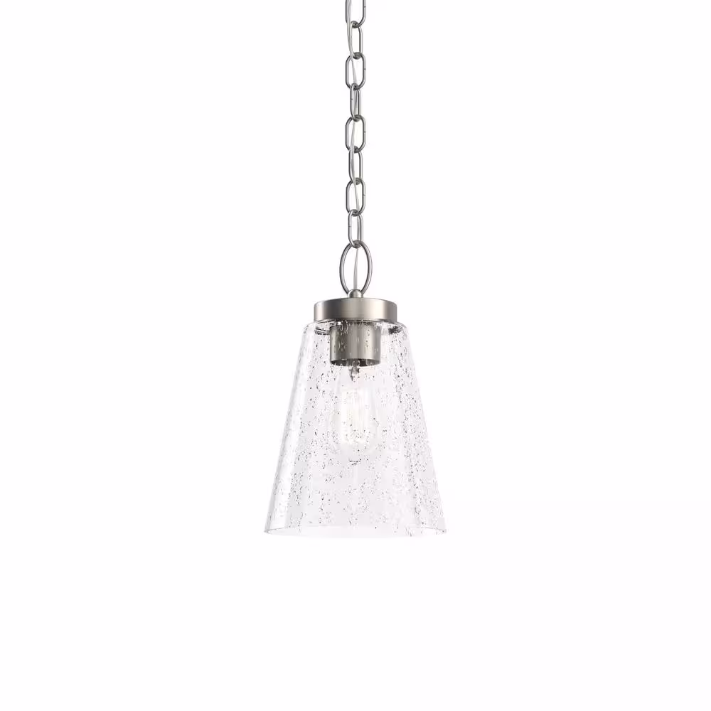 KICHLER Roycroft 7 in. 1-Light Brushed Nickel Farmhouse Shaded Kitchen Pendant Hanging Light with Clear Seeded Glass