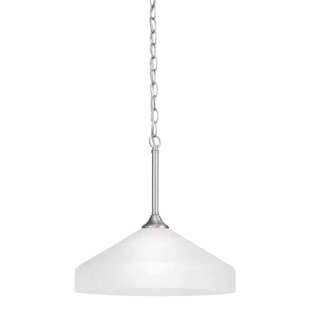 KICHLER Ansonia 1-Light Brushed Nickel Contemporary Shaded Kitchen Pendant Hanging Light with Satin Etched Glass