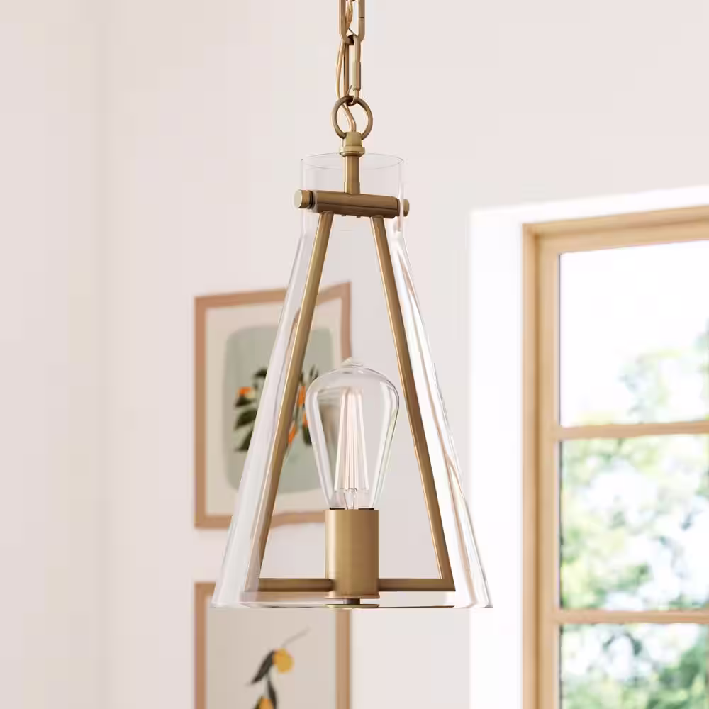 Nathan James Olton Gold Modern Pendant Light with Glass Shade, Hanging Light Fixture with Adjustable Brass Chain for Kitchen