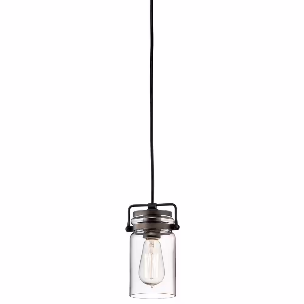 KICHLER Brinley 1-Light Olde Bronze Vintage Industrial Mason Jar Kitchen Mini Pendant Hanging Light with Clear Glass