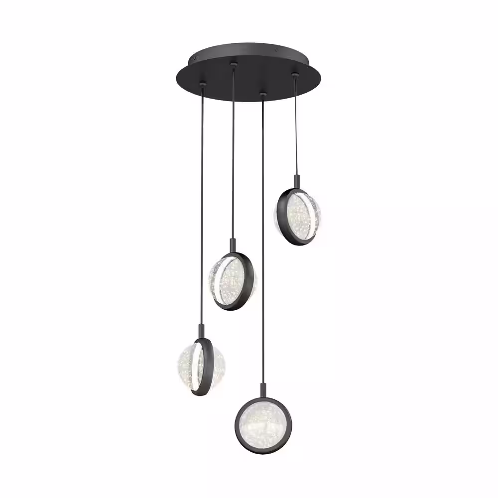 Artika Avalon 22-Watt 4 Light Black Modern 3 CCT Integrated LED Pendant Light Fixture for Dining Room or Kitchen