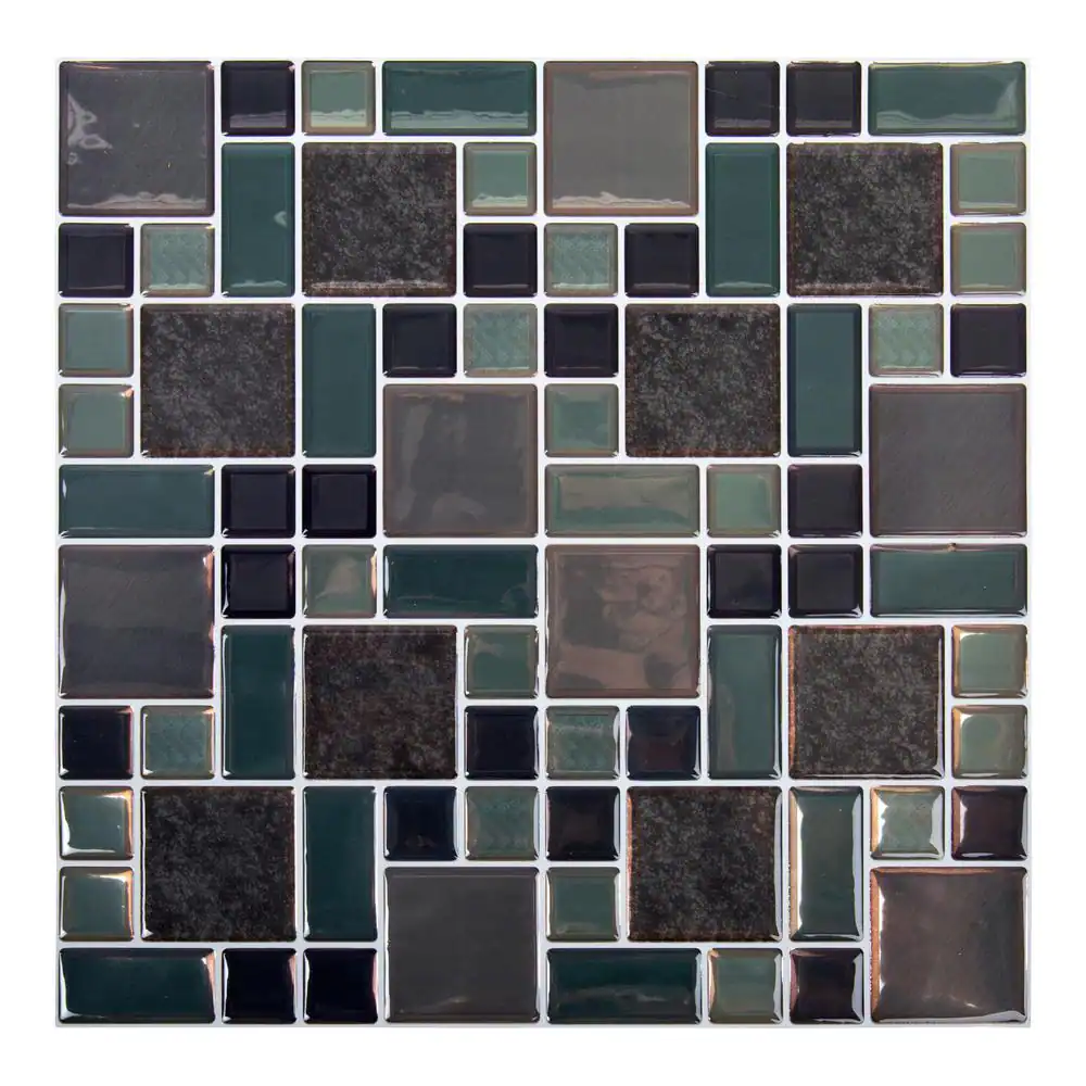 smart tiles Vintage Bartoli 9 in. x 9 in. Black and Grey Peel and Stick Decorative Kitchen and Bathroom WallTile Backsplash (4-Pack)