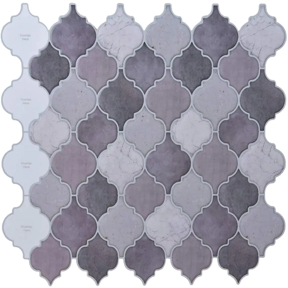 LONGKING Arabesque 12 in. x 12 in. Vinyl Peel and Stick Backsplash in Purple for Kitchen Wall Tiles