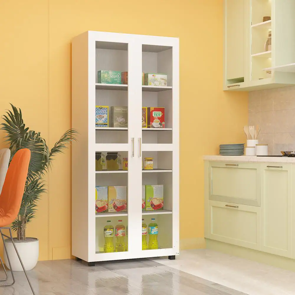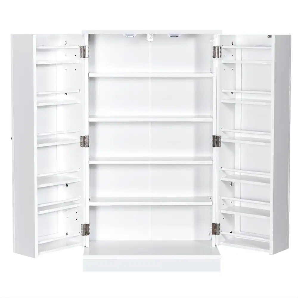 None 72 in. H White Wood Kitchen Food Pantry 2-Door Cabinet, Sideboard with 5-Tier Shelves