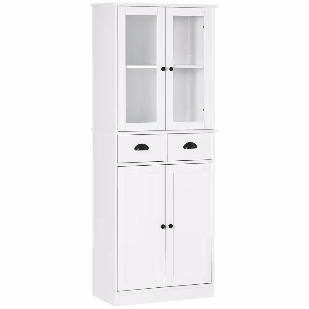 HOMCOM White 61 in. Freestanding Kitchen Pantry, Traditional Cabinet with Soft Close Doors, Adjustable Shelves and 2-Drawers