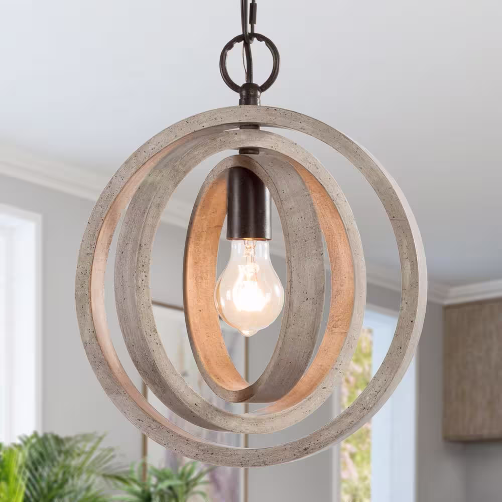 LNC Farmhouse Distressed White Wood Chandelier 1-Light Rustic Island Round Pendant Light for Kitchen Living Room