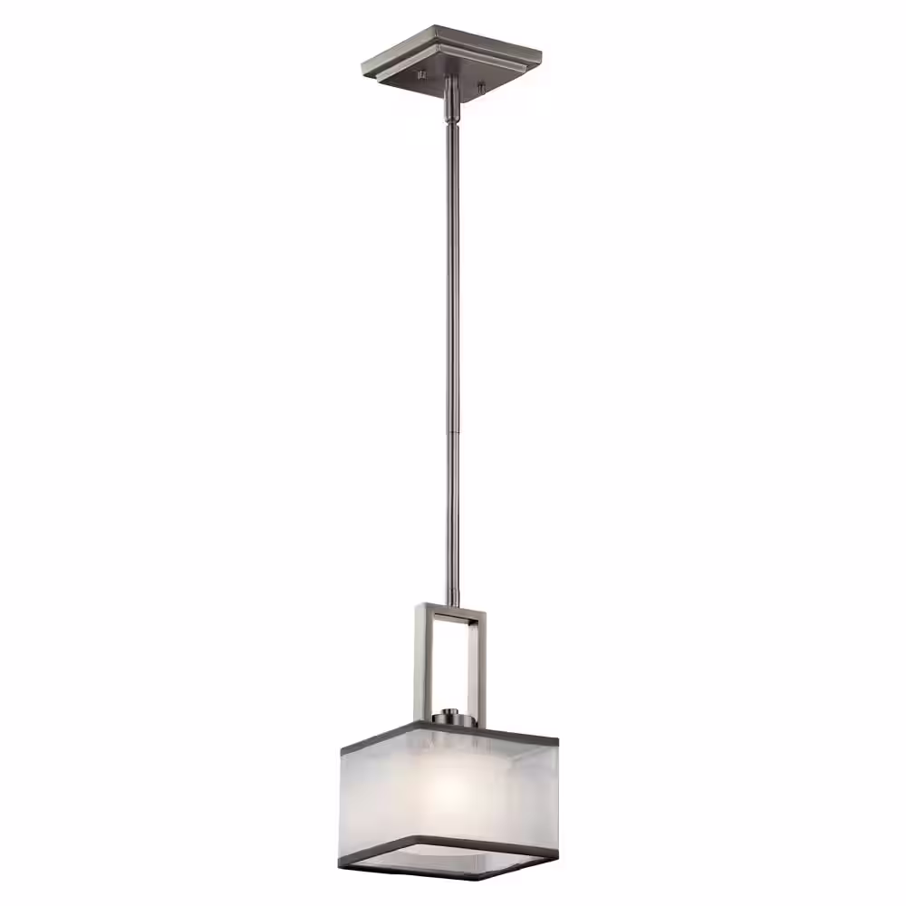 KICHLER Kailey 1-Light Brushed Nickel Transitional Shaded Kitchen Mini Pendant Hanging Light with Organza Shade