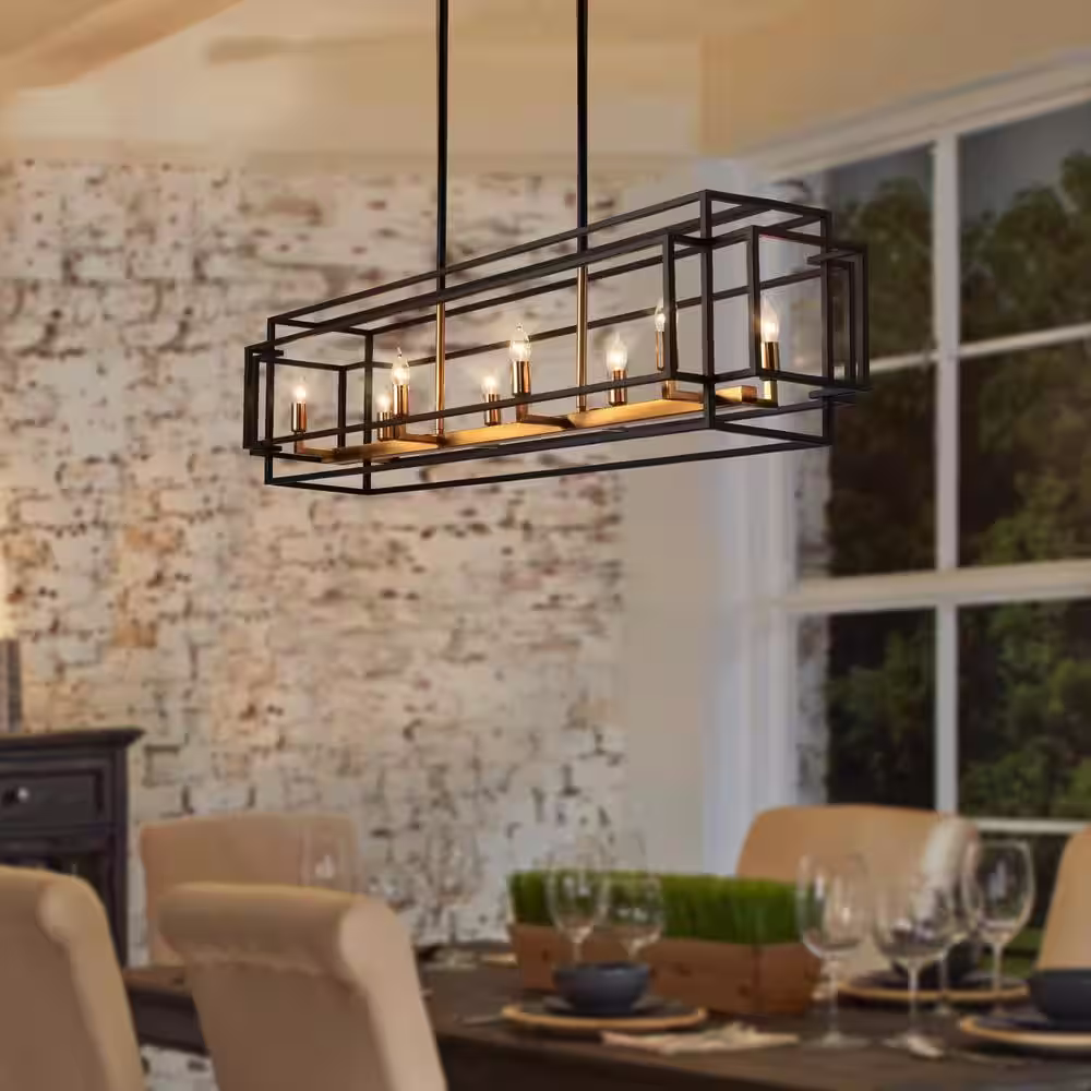 Magic Home 8-Light Kitchen Island Linear Chandelier Black and Gold Pendant Light Fixture for Dining Room, Living Kitchen Entryway