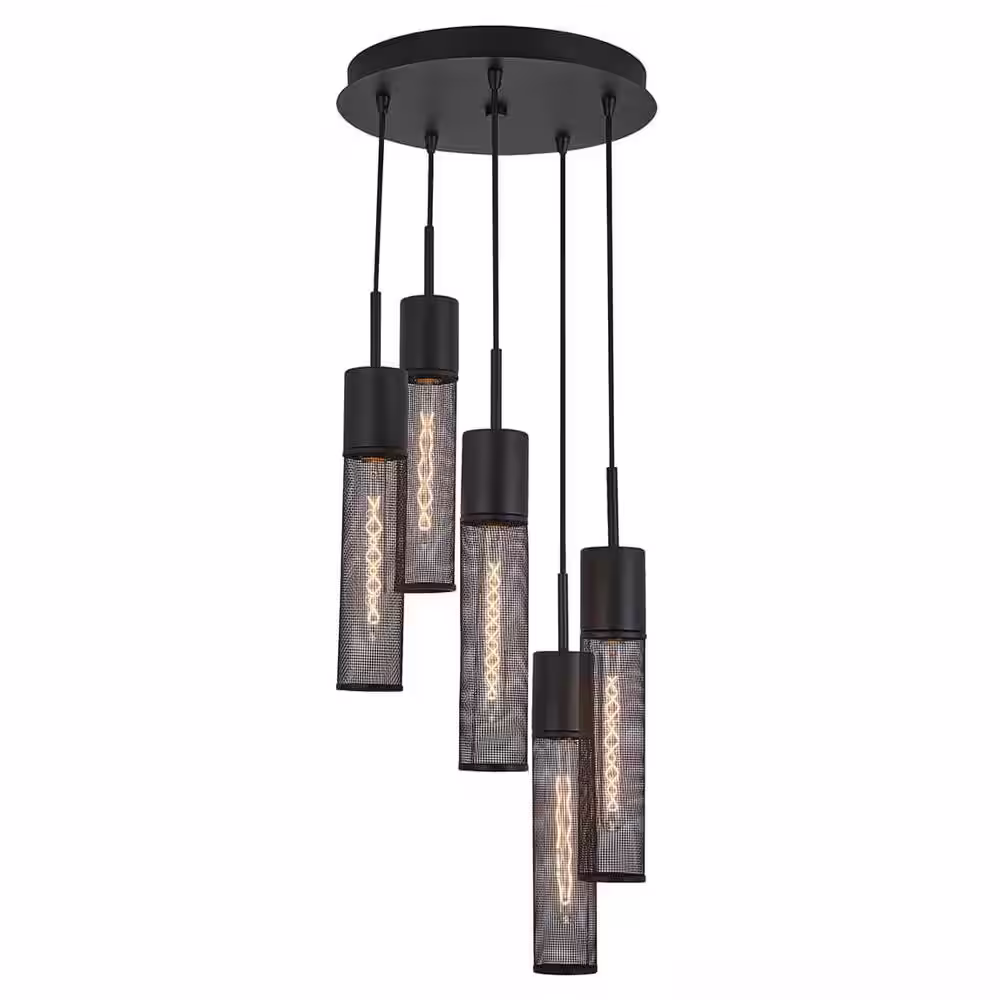 Artika Milton 60-Watt 5 Light Black Modern Pendant Light Fixture for Dining Room or Kitchen with Metal Mesh Shade
