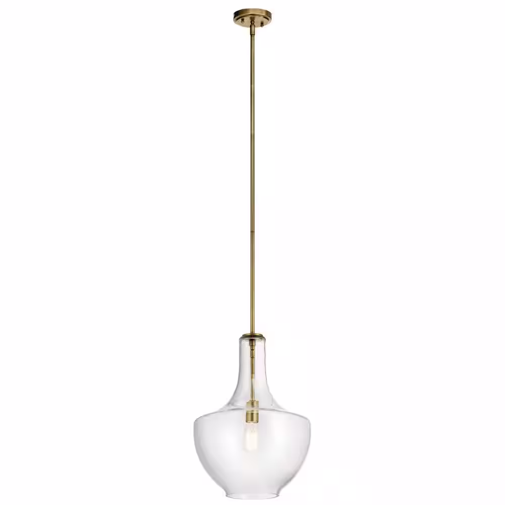 KICHLER Everly 19.75 in. 1-Light Natural Brass Transitional Shaded Kitchen Bell Pendant Hanging Light with Clear Glass