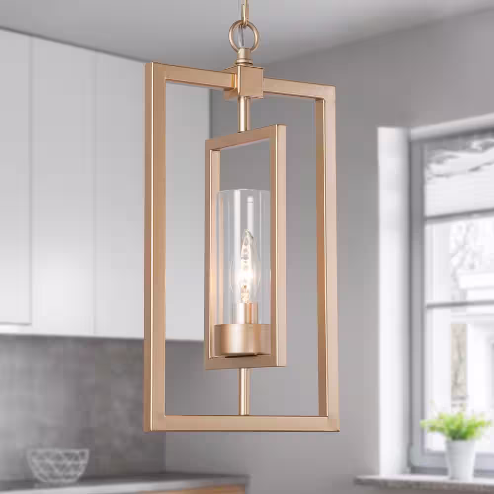 Uolfin Modern Gold Kitchen Pendant Light, 1-Light Brass Dining Room Chandelier Pendant Light with Clear Glass Shade