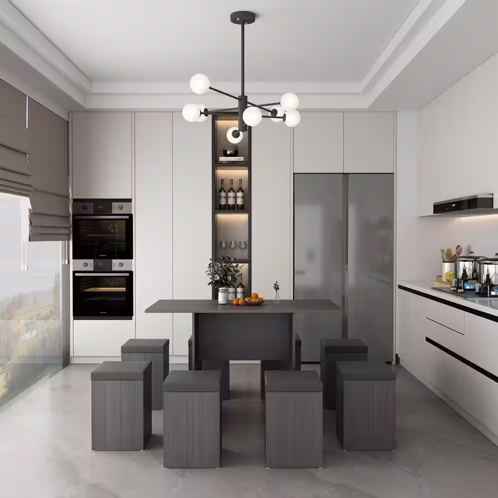 None 9-Piece Gray Dining Table Set Kitchen Furniture With Upholstered Seat and Table