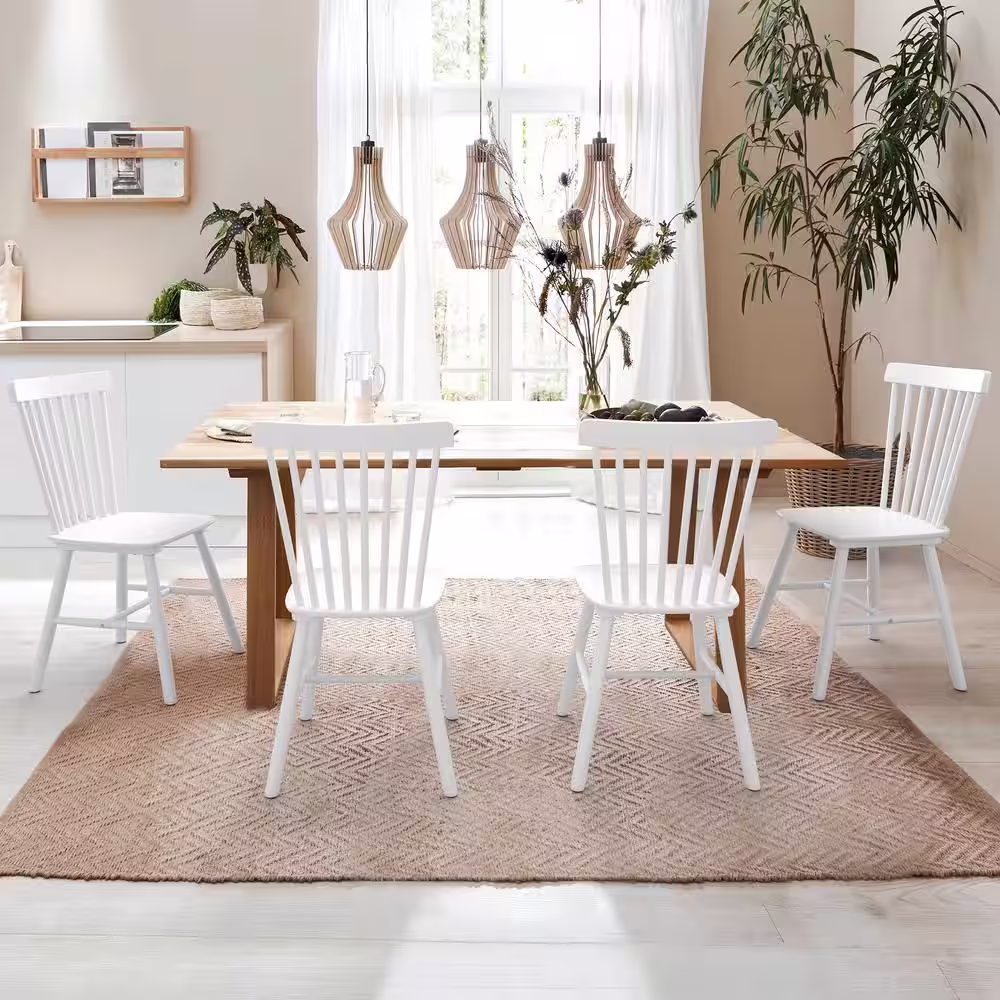 None Windsor White Solid Wood Dining Chairs for Kitchen and Dining Room (Set of 4)