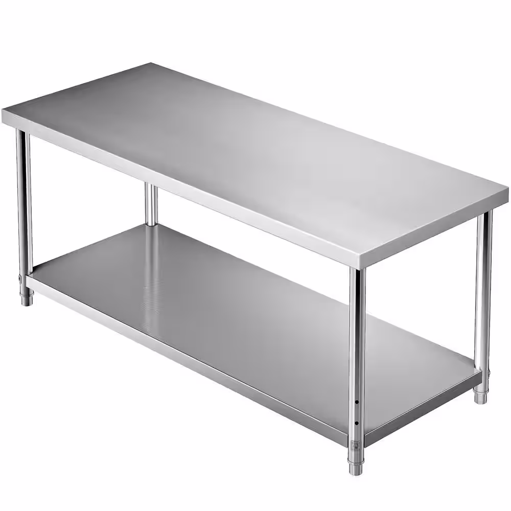 VEVOR Stainless Steel Prep Table 72 in. x 30 in. x 34 in. Heavy-Duty Metal Worktable 550 lbs. Load Capacity Kitchen Prep Table