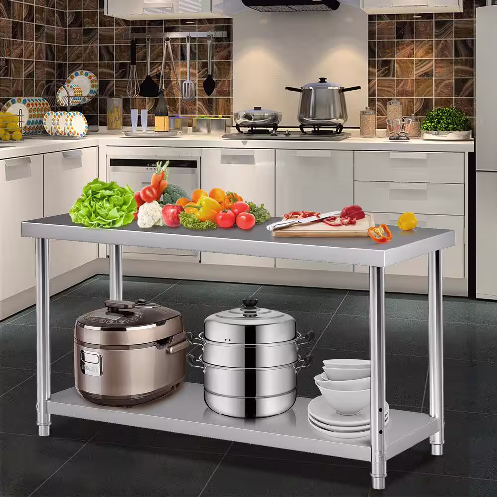 VEVOR Stainless Steel Prep Table 60 x 24 x 34 in. Metal Worktable with Adjustable Undershelf Kitchen Prep Table