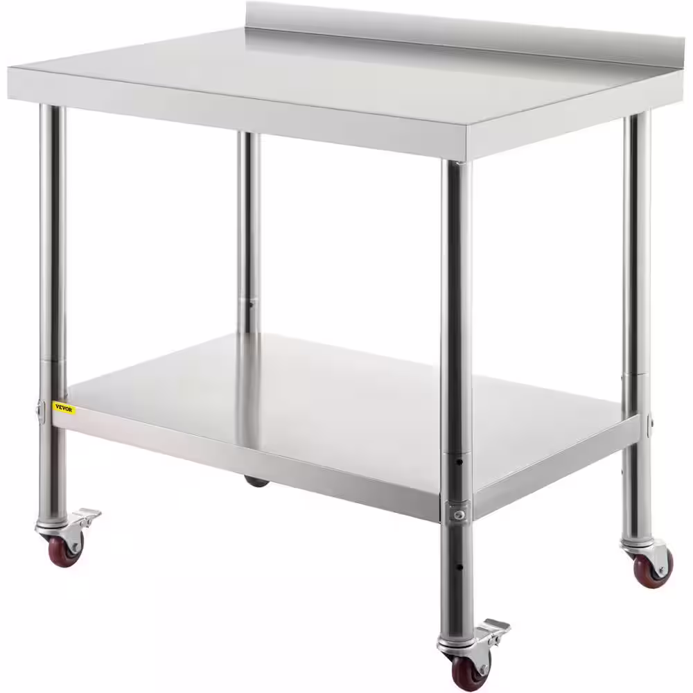 VEVOR Stainless Steel Table 36 x 24 in. Maple Kitchen Prep Table with Lower Shelf and Feet Kitchen Utility Table,Silver