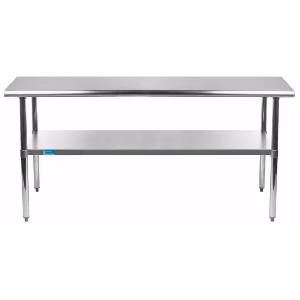 GRIDMANN 72 x 30 in. Stainless Steel Kitchen Utility Table with Backsplash and Bottom Shelf