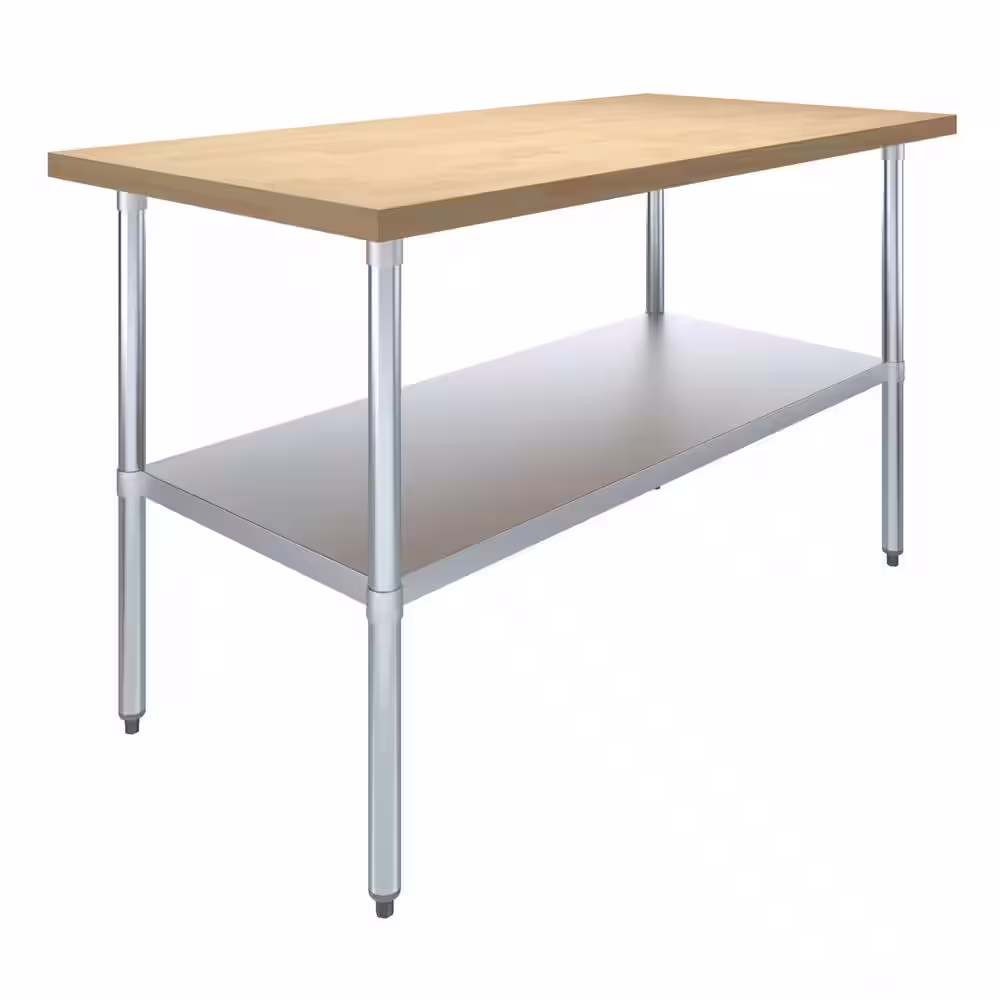 None Maple Wood Top 30 in.. x 60 in.. Kitchen Prep Table with Adjustable Bottom Shelf