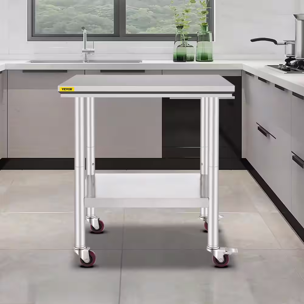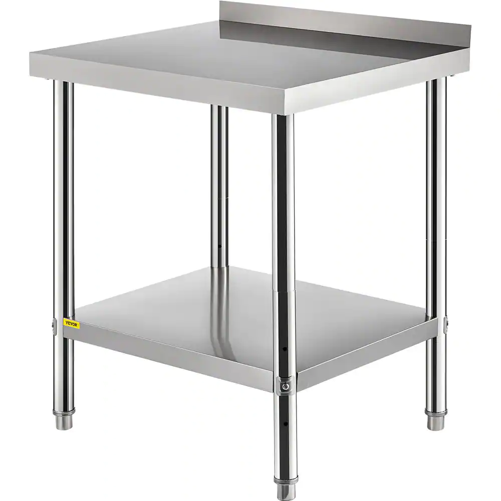 VEVOR Stainless Steel Prep Table 30 x 24 x 35 in. Heavy Duty Metal Worktable with Adjustable Undershelf Kitchen Utility Tables