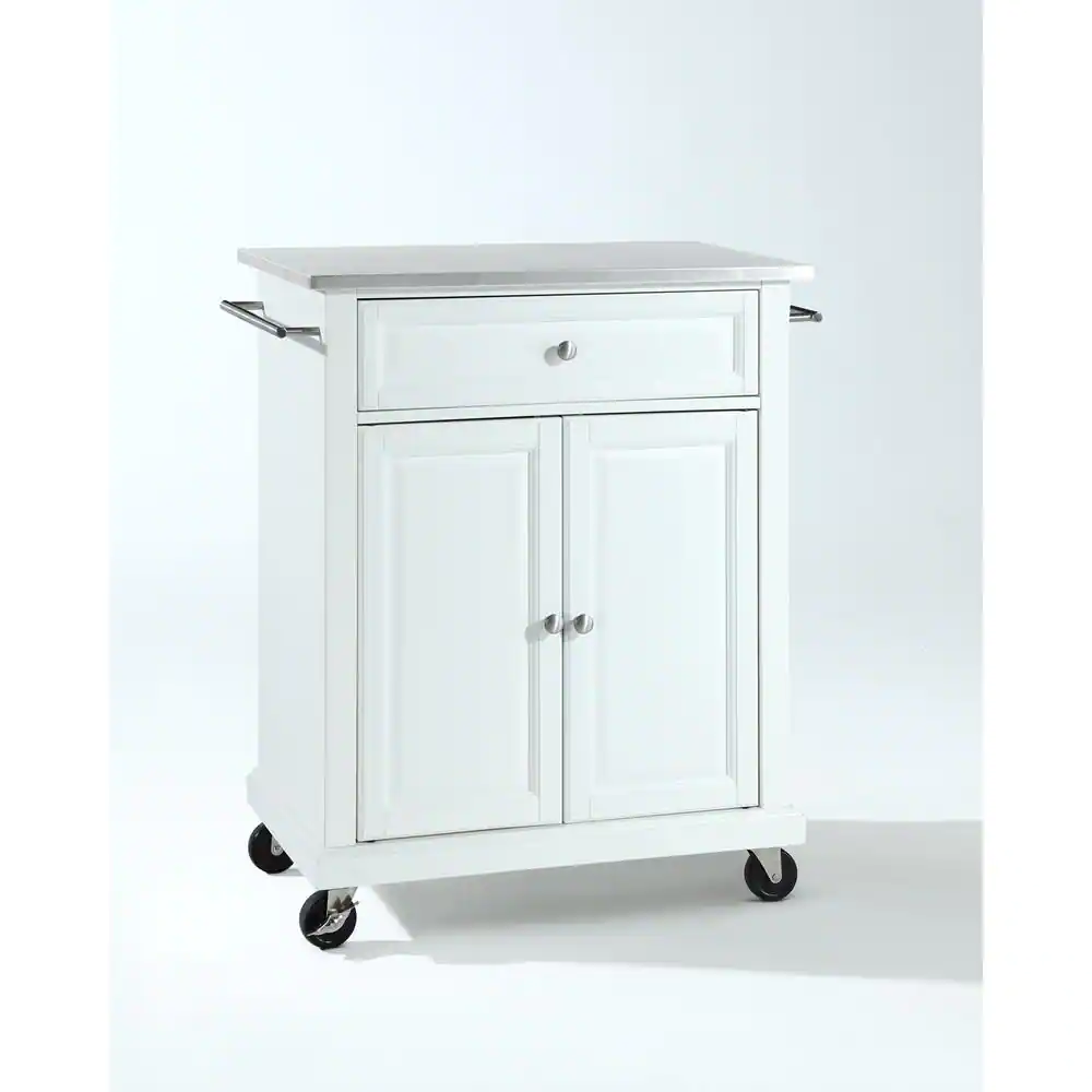 CROSLEY FURNITURE Rolling White Kitchen Cart with Stainless Top