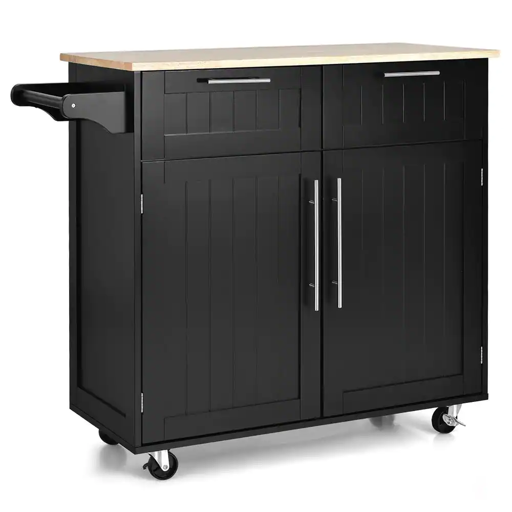 Costway Rolling Kitchen Cart Island Heavy Duty Storage Trolley Cabinet Utility Black