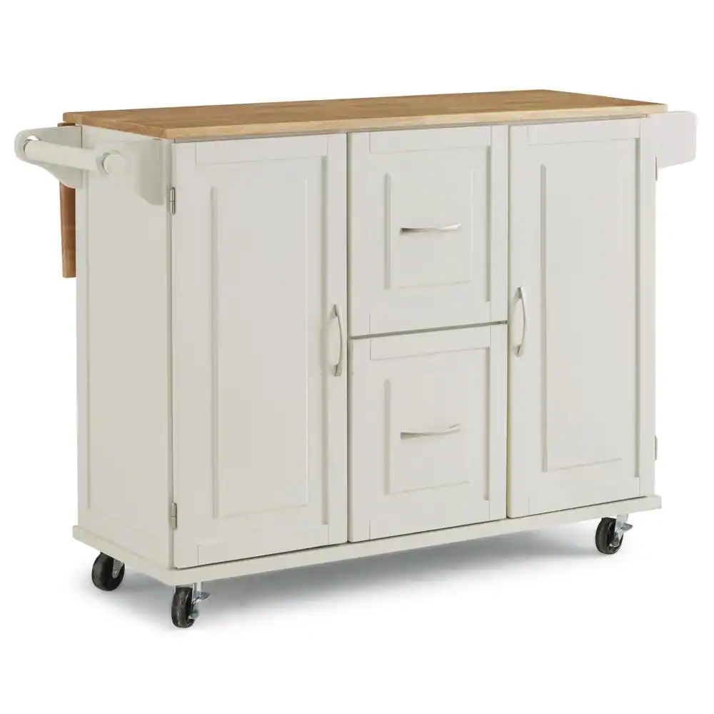 HOMESTYLES Dolly Madison White Kitchen Cart with Natural Wood Top