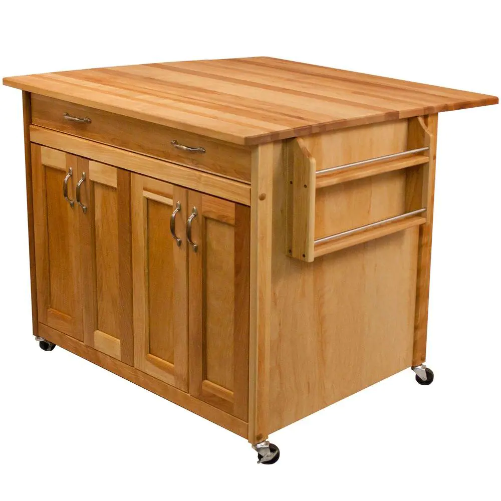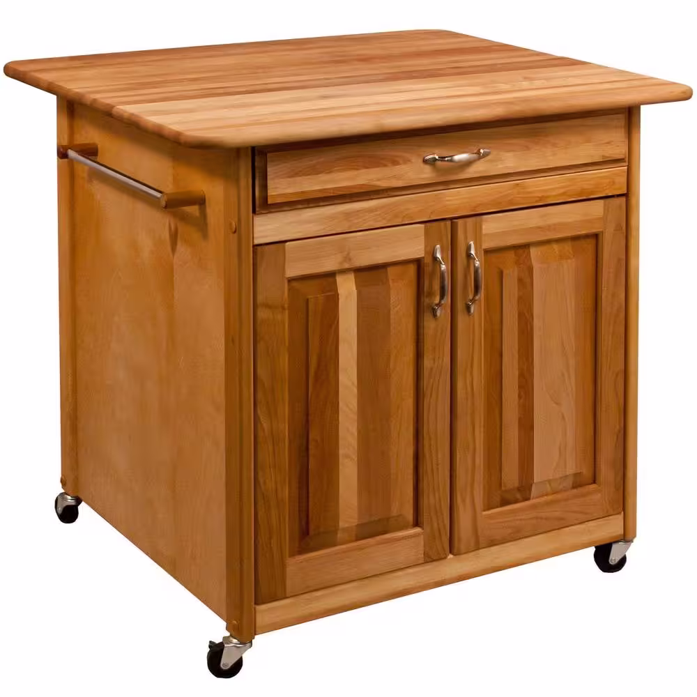 Catskill Craftsmen Natural Wood Kitchen Cart with Drop Leaf