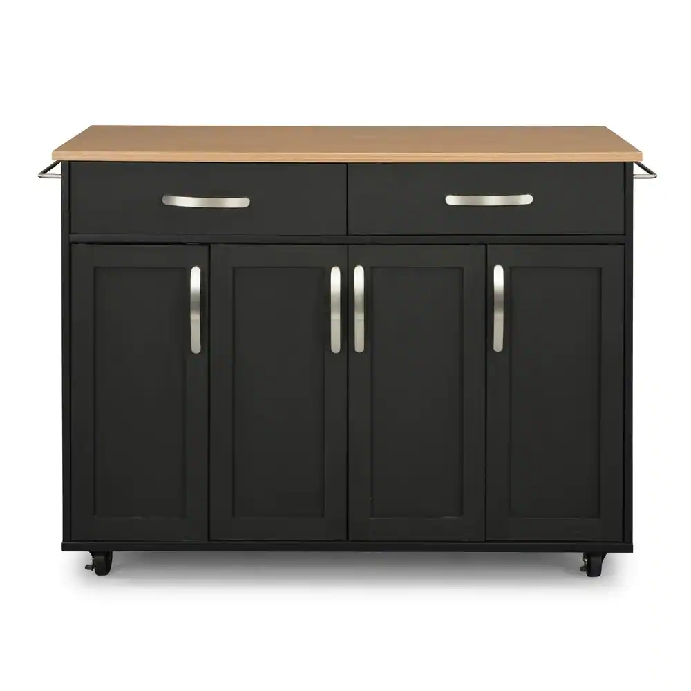 HOMESTYLES Brookshire Black Kitchen Cart with Natural Wood Top