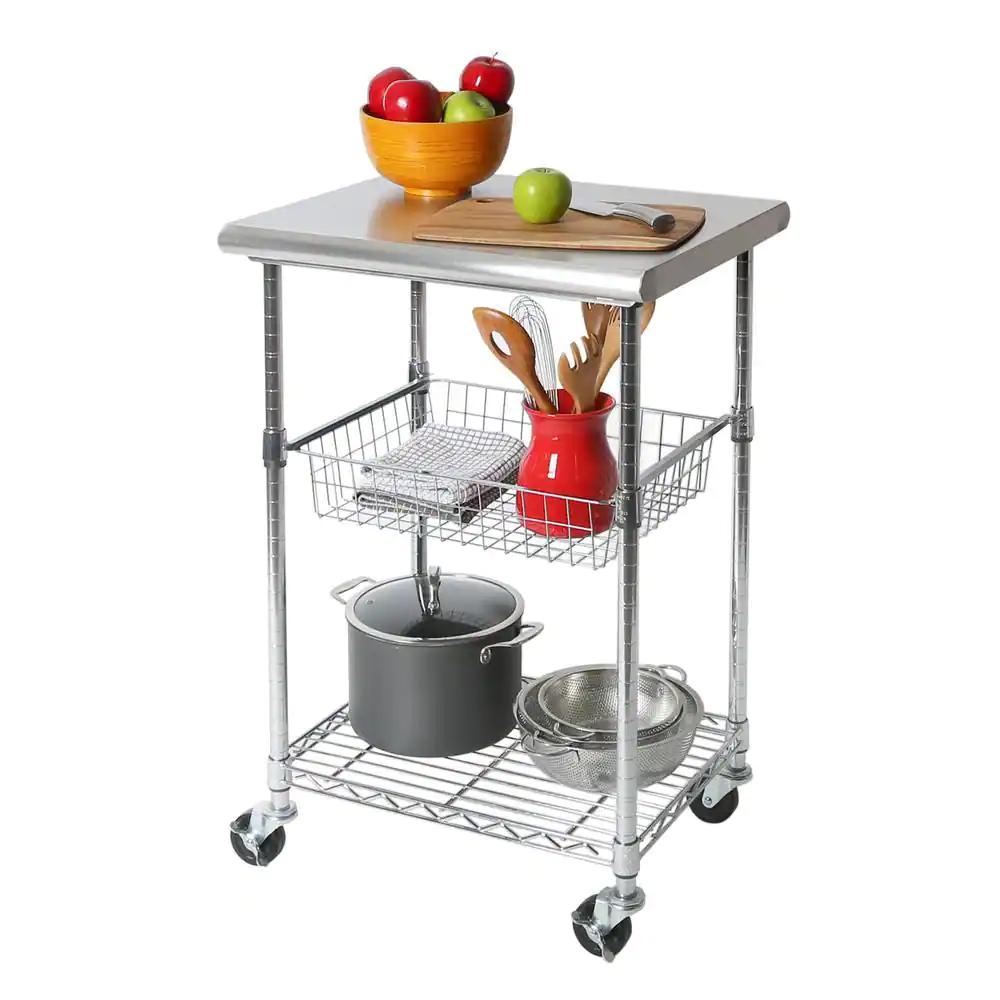 Seville Classics Stainless Steel Kitchen Cart with Basket
