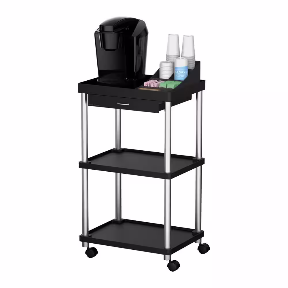 Mind Reader Anchor Collection Printer Cart with 3 Shelves and a Storage Drawer, Kitchen Cart, Utility Cart, Microwave Cart, Black