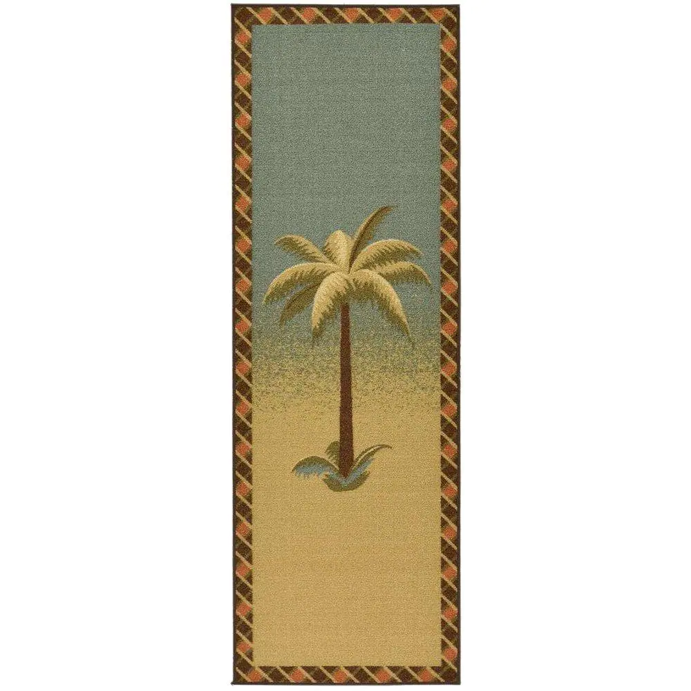 Ottomanson Sara Collection Non-Slip Rubberback Tropical Palm Tree 2x5 Kitchen Runner Rug, 1 ft. 8 in. x 4 ft. 11 in., Beige/Teal