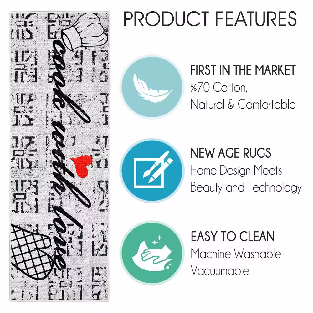 SUSSEXHOME Border Design Gray-Black-Red 20 in. x 59 in. Cotton Kitchen Runner Rug Mat